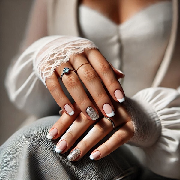 • Novia: Manicura francesa clásica con glitter en las puntas.