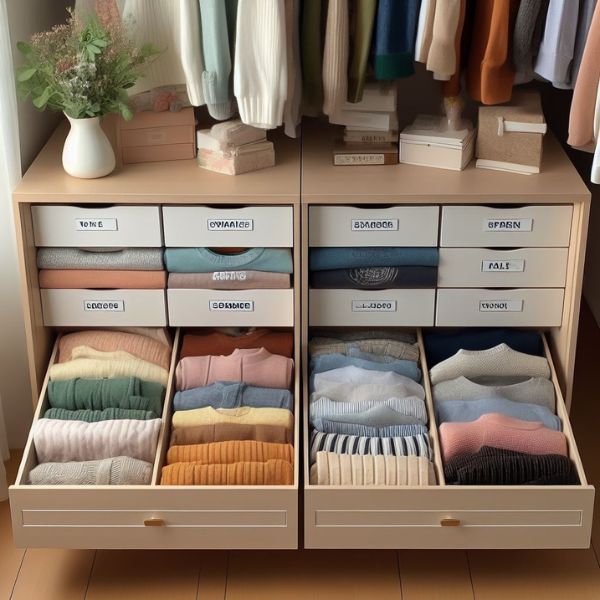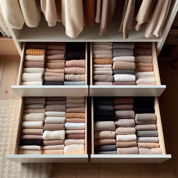 Los cajones son ideales para guardar ropa interior, calcetines, pijamas y otras prendas pequeñas. Utiliza organizadores de cajones para dividir el espacio y mantener todo ordenado.