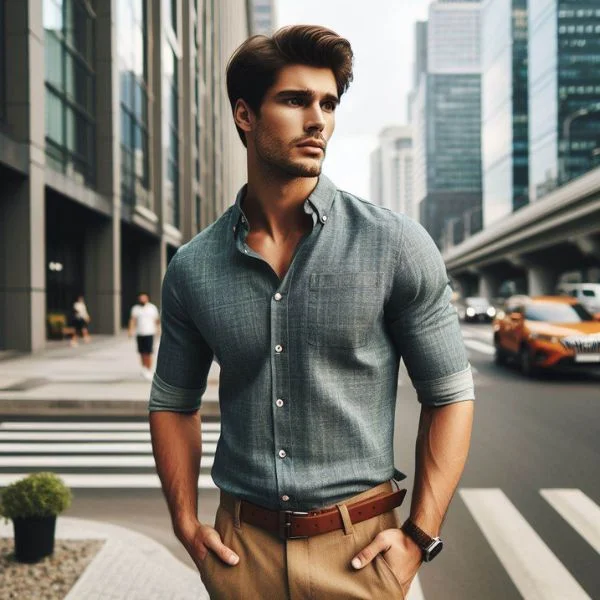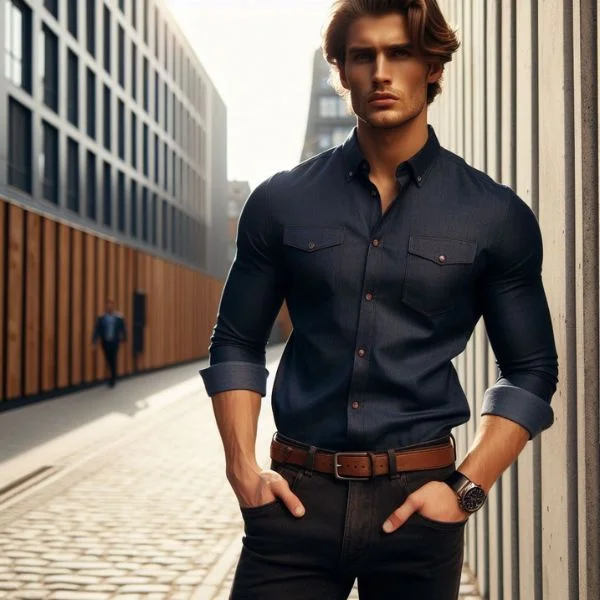 Camisa azul de vestir: Una camisa azul de vestir es una pieza clave para cualquier guardarropa formal o informal. Opta por una camisa de algodón que te quede bien y que tenga un corte clásico.
