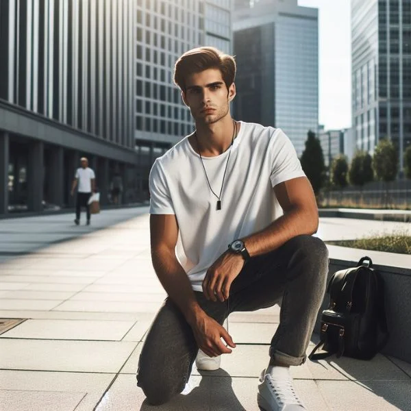Camiseta blanca: Una camiseta blanca lisa de algodón de buena calidad es una prenda fundamental que puedes combinar con casi cualquier cosa. Elige una camiseta que te quede bien y que sea cómoda de llevar.