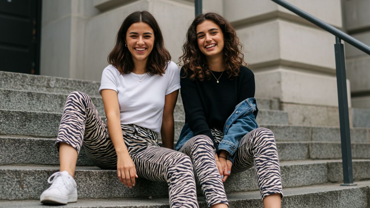 Para un día de paseo por la ciudad, opta por un outfit relajado que combine tu pantalón de estampado cebra con una camiseta básica blanca y una chaqueta denim ligera. Complementa con tenis en tonos naturales y lentes de sol modernos para un toque desenfadado.