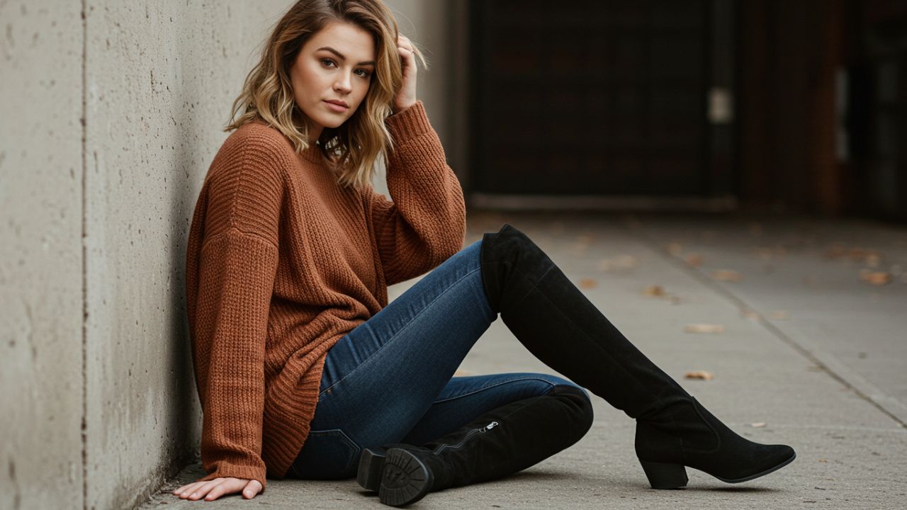 Combina tus botas altas con una falda midi plisada y un jersey ajustado. Este look es ideal para un brunch con amigas o una salida al cine.