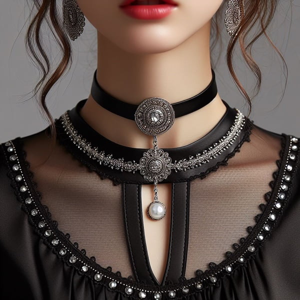 El cuello redondo es un clásico que nunca pasa de moda. Para realzarlo opta por collares cortos y ajustados al cuello. Las gargantillas son ideales para este estilo, ya que enfatizan la línea del escote sin robarle protagonismo.