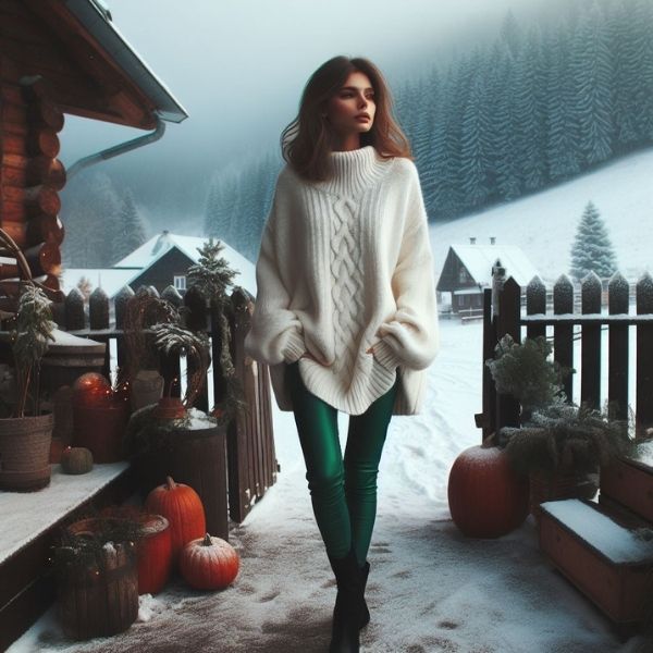 En esta temporada un suéter blanco puede ser tu mejor aliado. Si eliges una pieza oversize la opción ideal para combinarlo serían unos pantalones ajustados en tono azul marino o si prefieres algo más colorido, un verde esmeralda. Completa con unas botas invernales.