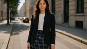 Para un look formal, puedes combinar una blusa blanca con una falda marrón y unos tacones beige. Puedes agregar un blazer terracota para darle un toque más sofisticado.