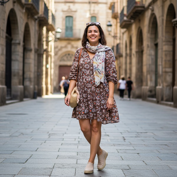 Si decides visitar el Barrio Gótico, elige un vestido fluido con detalles florales y unas alpargatas elegantes. Completa el look con una bufanda ligera para las noches frescas. Este conjunto te permitirá sumergirte en la cultura relajada y artística de la ciudad.