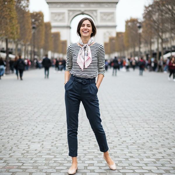 En la Ciudad del Amor elige looks que reflejen la elegancia clásica parisina. Para un paseo por los Campos Elíseos, opta por un conjunto de blusa rayada, pantalones de cintura alta y unas balerinas. Añade un pañuelo delicado al cuello para un toque chic.