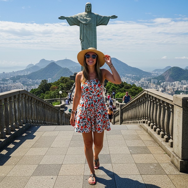 Si decides explorar el Cristo Redentor, elige un vestido ligero y colorido con sandalias planas. Añade un sombrero de ala ancha y unos lentes de sol para mantenerte fresca y a la moda mientras disfrutas de las vistas impresionantes de la ciudad.