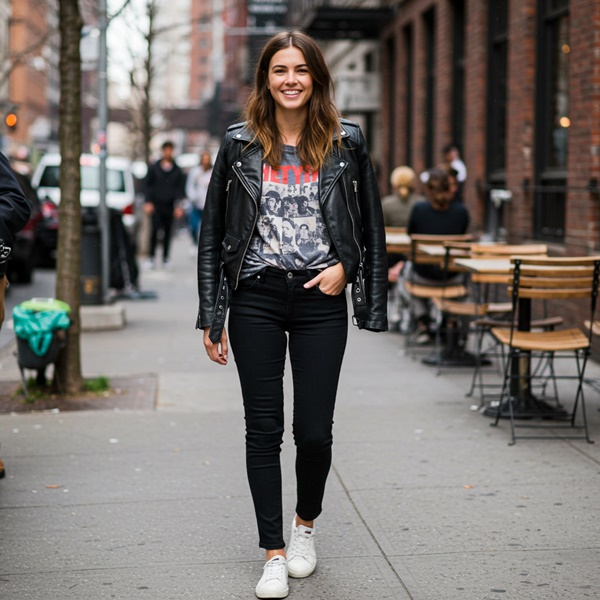 Cuando visites la Gran Manzana, abraza el espíritu urbano con un look chic pero cómodo. Opta por unos jeans negros ajustados, una camiseta estampada y una chaqueta de cuero para esos días frescos en Central Park. Combina con tenis blancos y accesorios minimalistas. Este conjunto te llevará fácilmente desde un brunch en Brooklyn hasta una noche en Times Square.