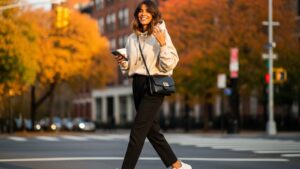 Apuesta por una bomber en verde oliva, el tono clásico de esta tendencia, o prueba una versión en negro satinado para una opción más elegante. Combínala con jeans, una camiseta blanca y botines para un outfit casual con actitud.