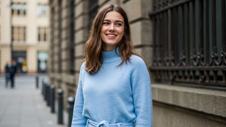 El azul cielo puede incorporarse a cualquier look, ya sea con prendas principales o detalles sutiles.