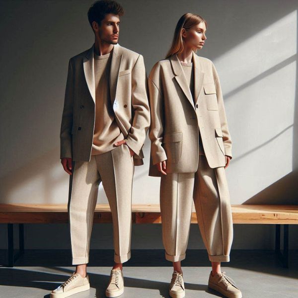 - Trajes oversize: Los trajes oversize, tanto chaquetas como pantalones, son una prenda clave en la moda gender-neutral. Son cómodos, versátiles y pueden adaptarse a cualquier estilo. Puedes combinarlos con una camiseta básica, una camisa o un top más formal.